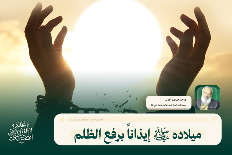 وقد كان ميلاده ﷺ بداية وعلامة على رفع الظلم والظلمات من الأرض، وعلى نشر العدل والحق أمام الظلم الشديد الذي تسبب في مقت الله تعالى لأهل الأرض..